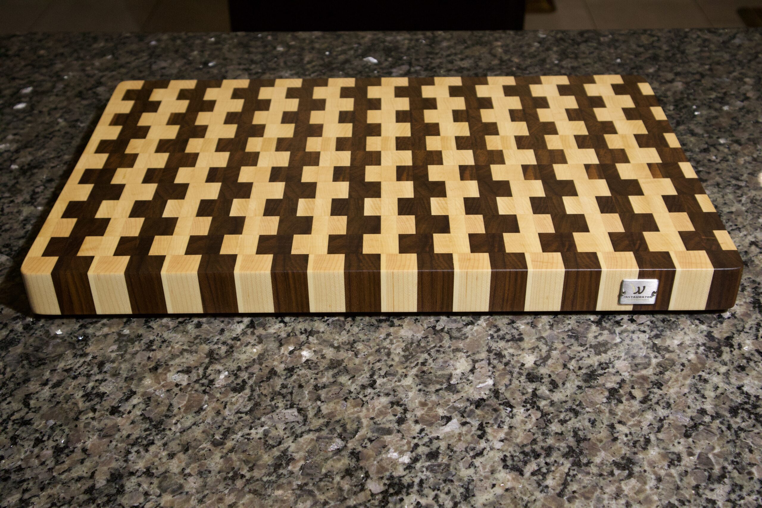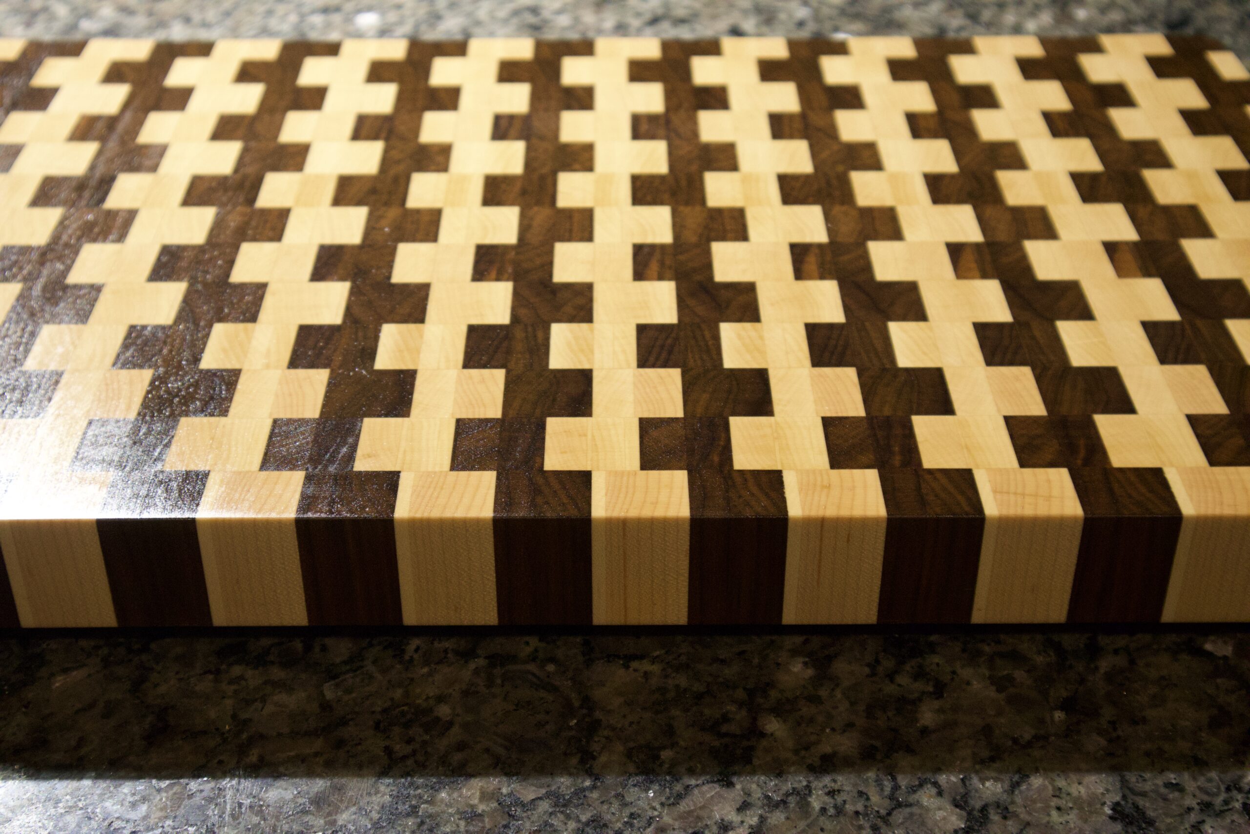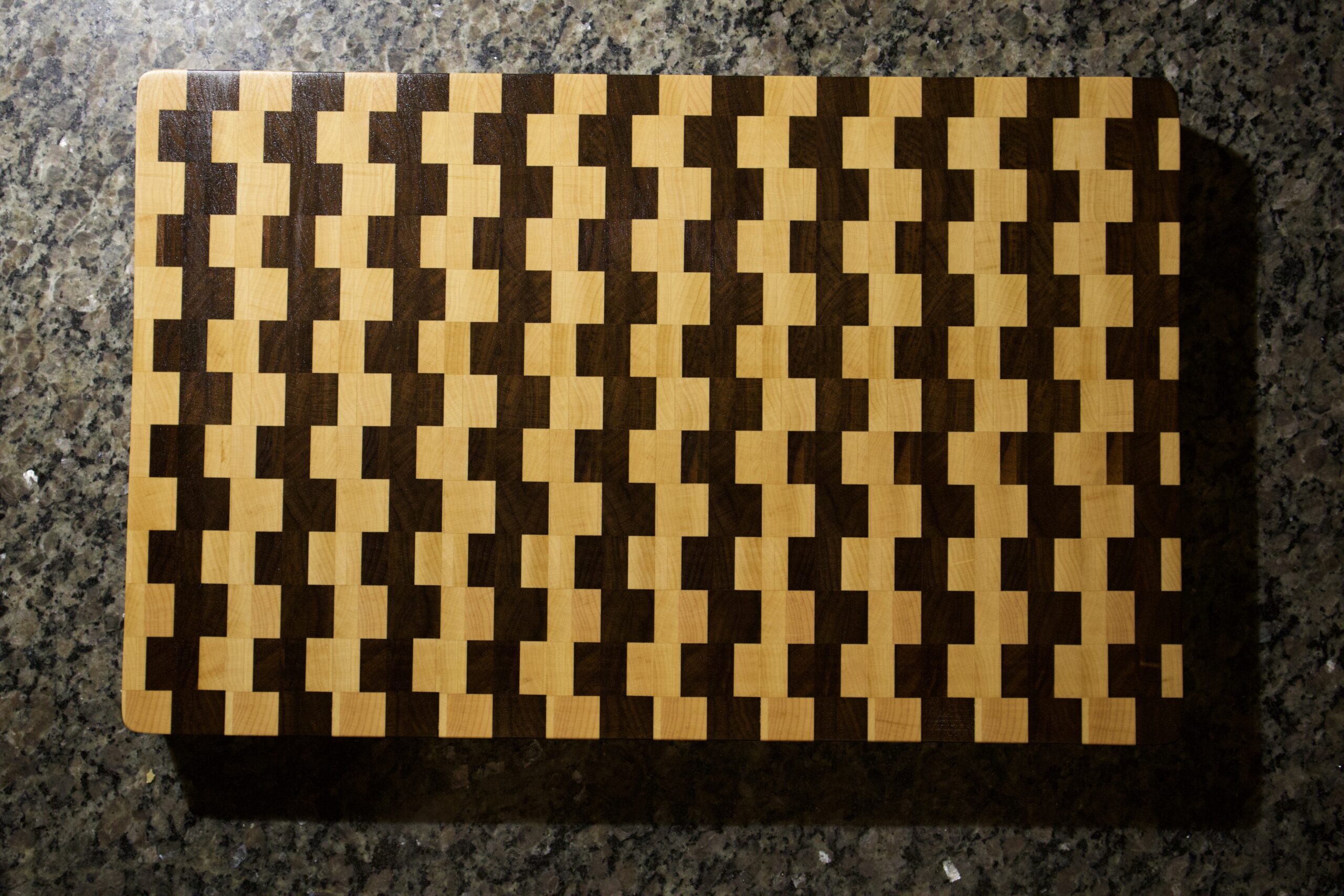 After uncertainty throughout planning the design, I decided to just get started on making the “Altered Tile” cutting board. Selecting the contrasting woods to mimic the black and cream tiles was made simple with my experience using hard maple and black walnut. They are comparable in janka hardness and their grain density is ideal for end grain cutting boards.